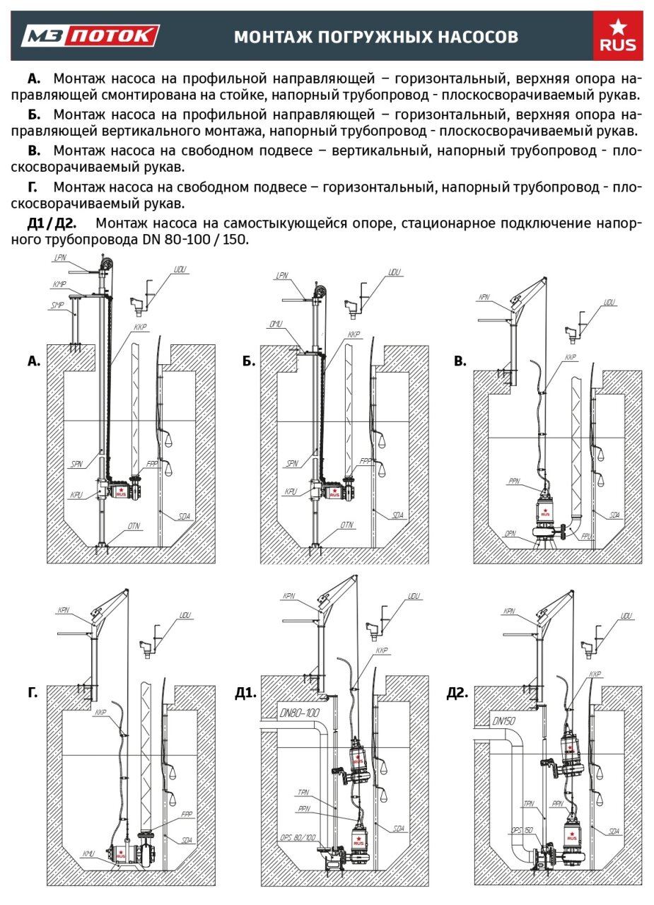 Для монтажа и обслуживания погружных насосов и миксеров в резервуарах они комплектуются надежными монтажными кронштейнами, АТМ системами снабженными лебедками.