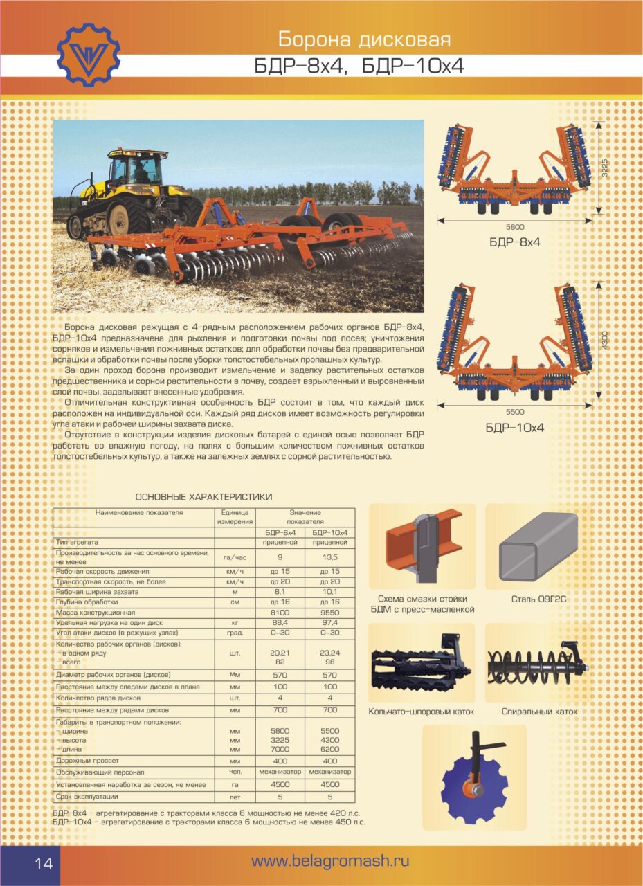 Отличительная конструктивная особенность БДР состоит в том, что каждый диск расположен на индивидуальной оси. Каждый ряд дисков имеет возможность регулировки угла атаки и рабочей ширины захвата диска.