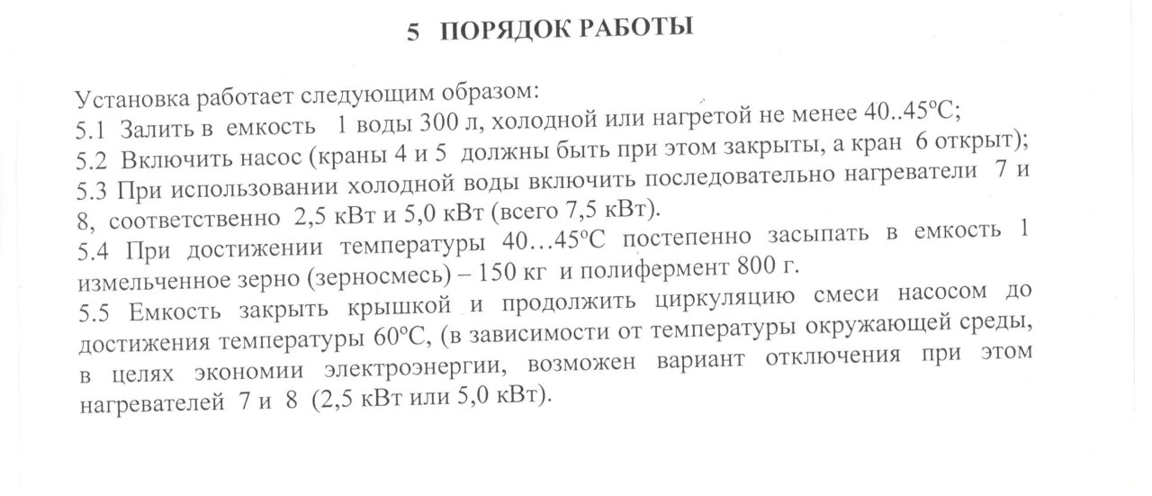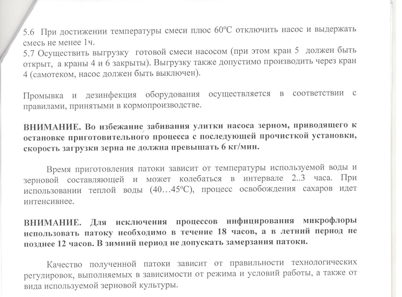 Для сельхозпредприятий и фермерских хозяйств разработана и изготовлена перспективная установка для получения ферментированного легко усваяемого корма (зерновой патоки) из озимых и яровых культур: пшеница, рожь, ячмень, овес и т.д. Жидкая зерновая патокапредставляет собой гомогенную массу с содержанием : сухих веществ 30-35%, углеводов (сумма сахаров) 20-25%, в том числе глюкозы, от общего содержания сахаров 30-50%. Зерновая патока имеет сладкий вкус и хорошо поедается всеми видами животных и птиц.