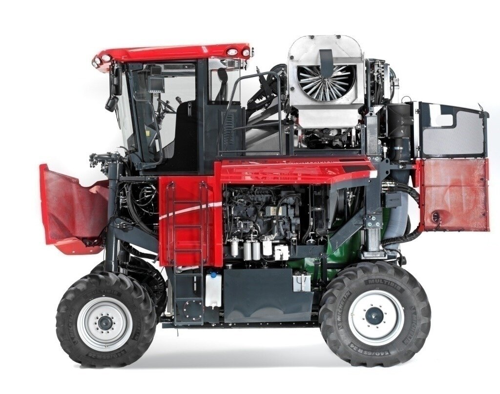 - Эффективность уборки: 14 стряхивающих бичей с регулировкой амплитуды и расстояния, пять независимых систем очистки, включая роликовый сортировочный стол VitiSelect и гребнеотделитель.