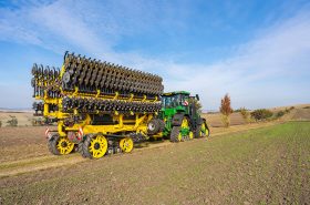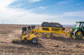 Универсальная широкозахватная сеялка с возможностью подготовки почвы за один проход, рассчитанная на максимальную дневную производительность.