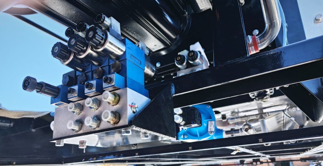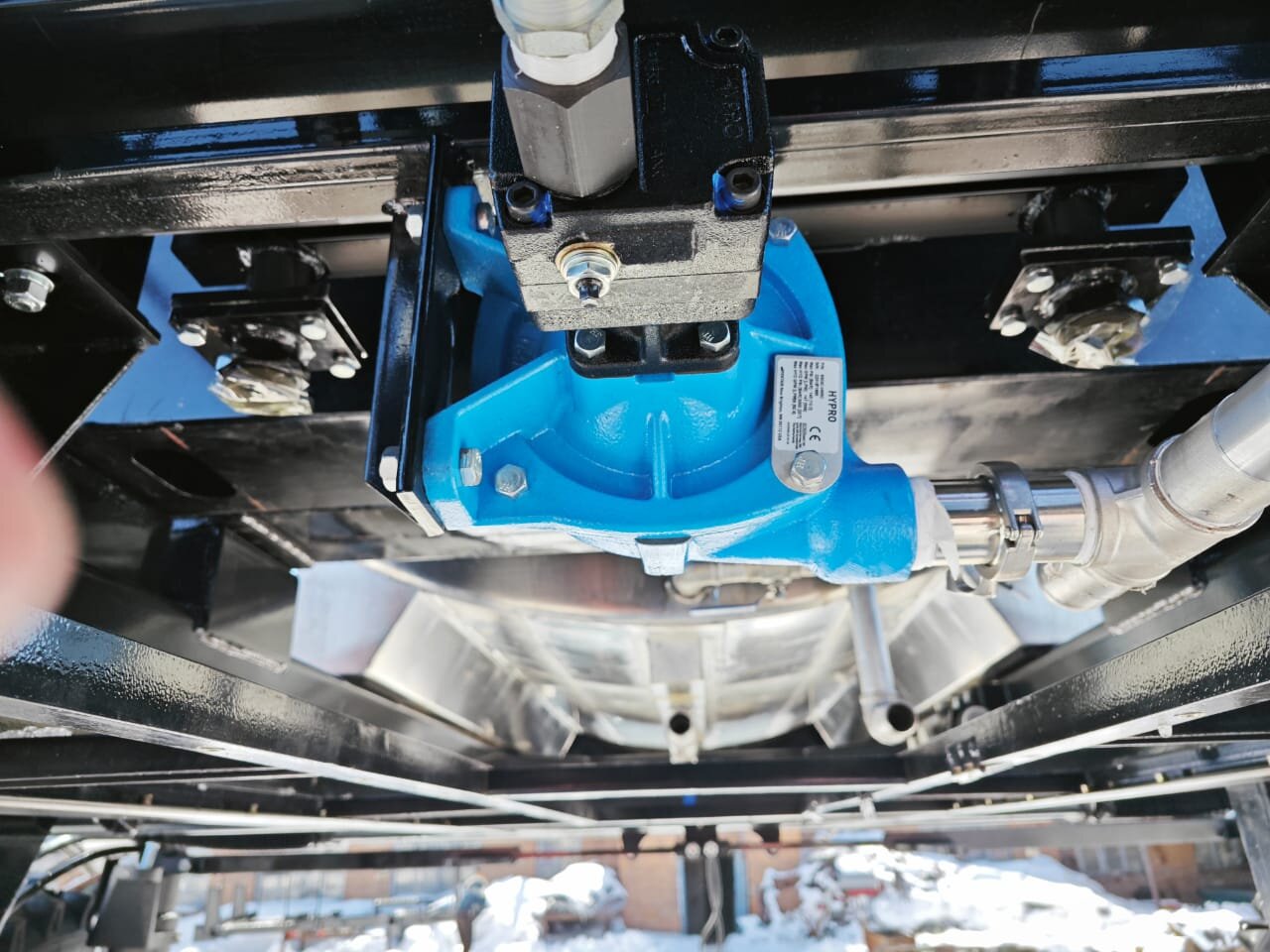 На данном опрыскивателе распылитель устанавливается американский (насос HYPRO). Насос HYPRO 9303C-HM5C максимальной производительностью 549 л/мин позволяет достичь нормы вылива до 450 л/га.