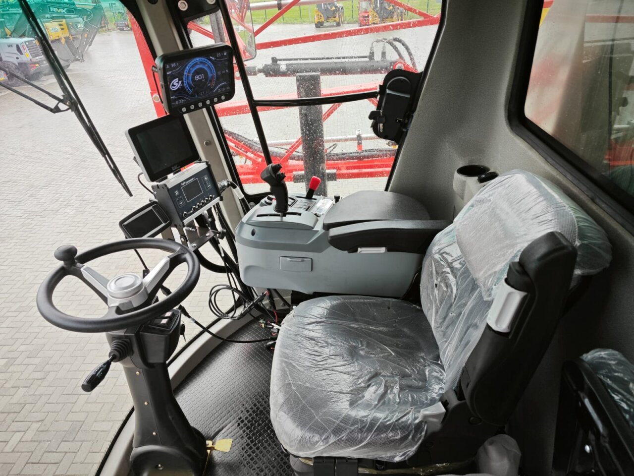Опрыскиватель оборудован полноприводной системой на гидромоторах, 4-мя полноповоротными колесами (4WS), максимальным клиренсом в 170 см и регулируемой шириной колеи в диапазоне 1,98 - 2,65 метра. Колея: 3-3,95 м, бесступенчатая регулировка в кабине. Скорость: рабочая скорость 0-18 км/ч; максимальная скорость 40 км/ч.