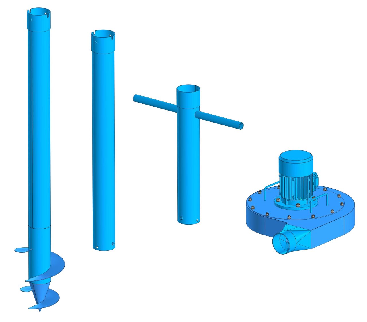 Агромаш-НН производитель зерновых аэраторов серии АЗ. Вентилятор зернового вороха служит для вытягивает излишек тепла и влаги из очагов самонагрева, выравнивания температуры насыпи. Аэратор для зерна освобождает от необходимости перемещения зерна для проветривания, поддерживает свежесть зерна даже в глубине большой неравномерной насыпи, а так же помогает досушить зерно во время хранения. Аэратор ввинчивается в зерно на любую глубину благодаря специальному наконечнику со шнеком и разборной трубы, которая может быть любой высоты. Таким образом устройство может использоваться для любого размера зернохранилища. Диаметр и перфорация труб зерновых аэраторов, производства Агромаш-НН, были просчитаны и подобраны таким образом, чтобы обеспечить наилучшие показатели среди аналогичных конструкций с более мелкой перфорацией или же с большим диаметром трубы.
