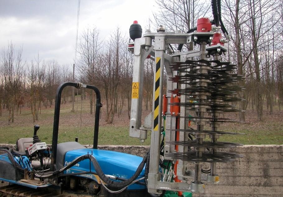 - Машина состоящая из 8 пар режущих дисков (рабочий диаметр примерно 60/70 см) на гидравлических двойных стойках(возможность установки пар дисков).