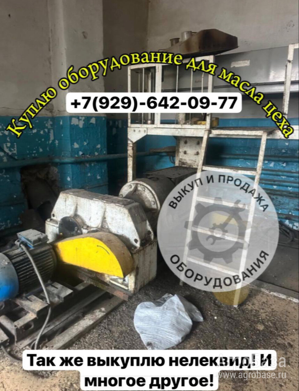 Так же выкуплю оборудование масло цеха!
