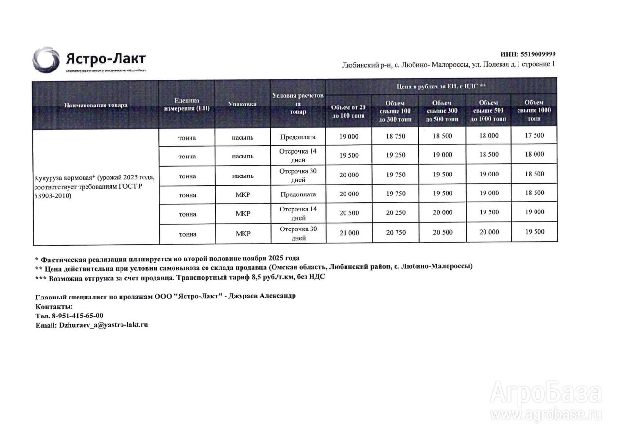 Компания Ястро-Лакт планирует уборку урожая кукурузы для реализации в
