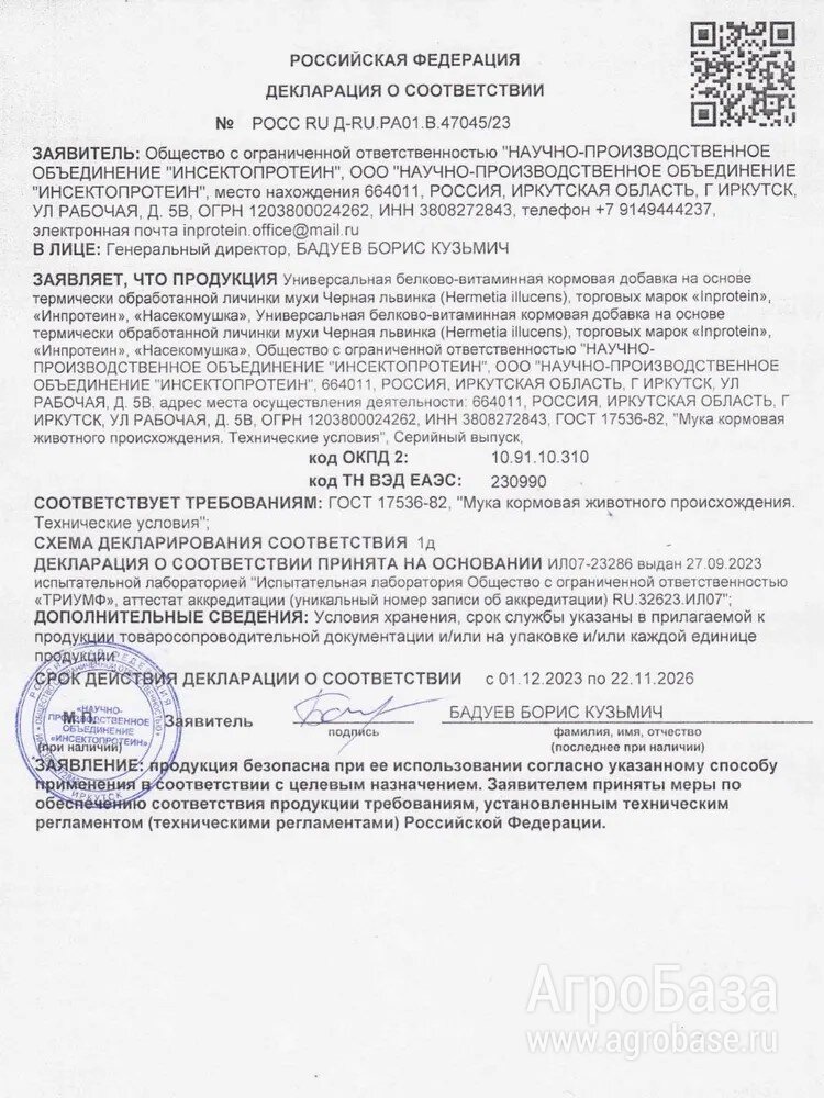 Белково-витаминные добавки на основе протеина личинок мухи Черная львинка