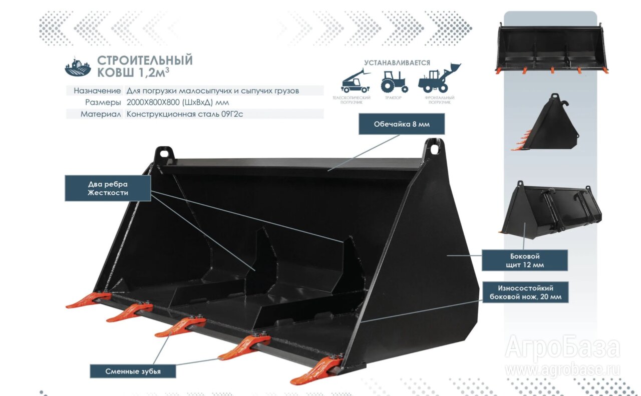 Ковш 1.2 куба строительный для погрузчика телескопического и фронтального