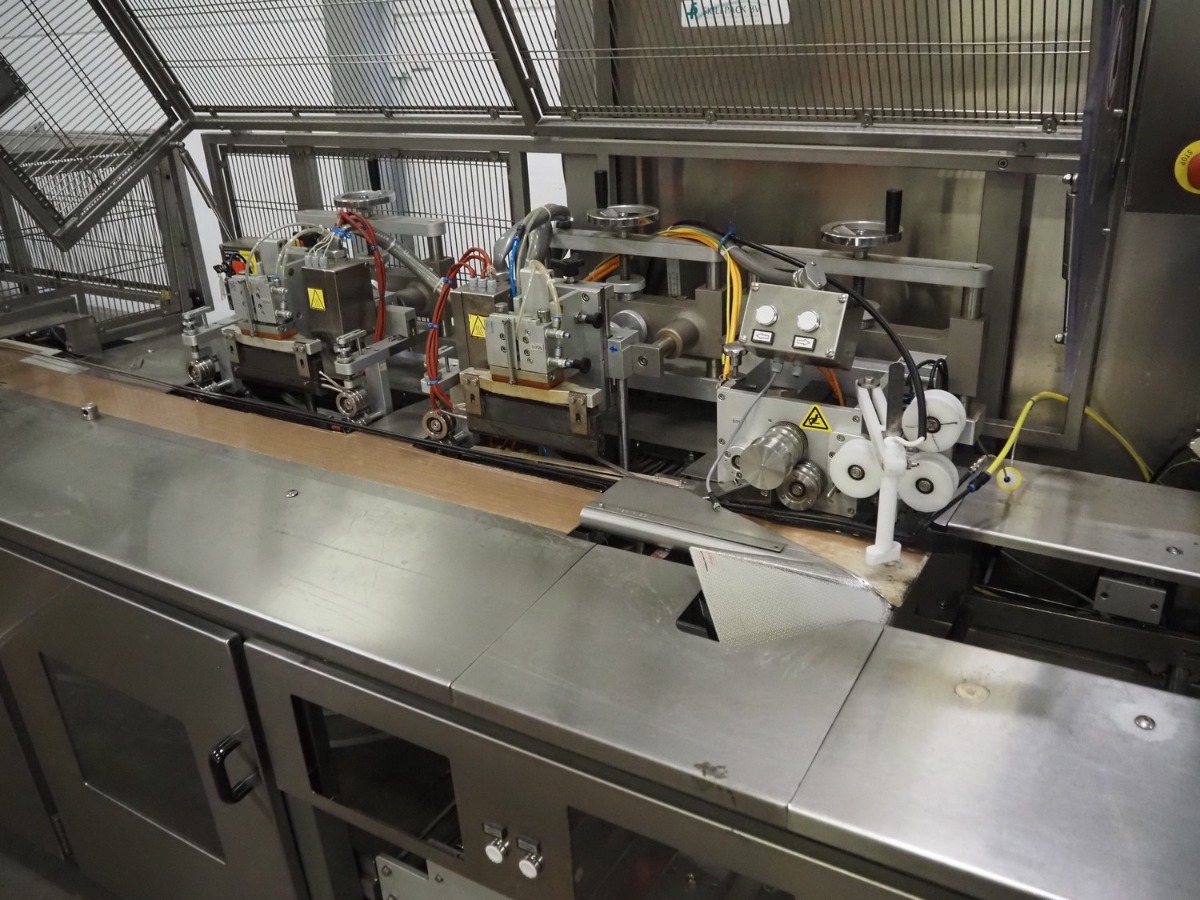 Группа поперечной сварки, эксклюзивная система сварки с 18-22 сварочными губками, длительная выдержка в сомкнутом состоянии, до 180 абсолютно герметичных упаковок в минуту. Превосходный ровный шов, упаковка премиум класса. Контроль за температурой каждой сварочной губки происходит раздельно. Если температура одной из губок не соответствует заданным параметром, то машина автоматически останавливается. Управление и самодиагностика через сенсорный экран.