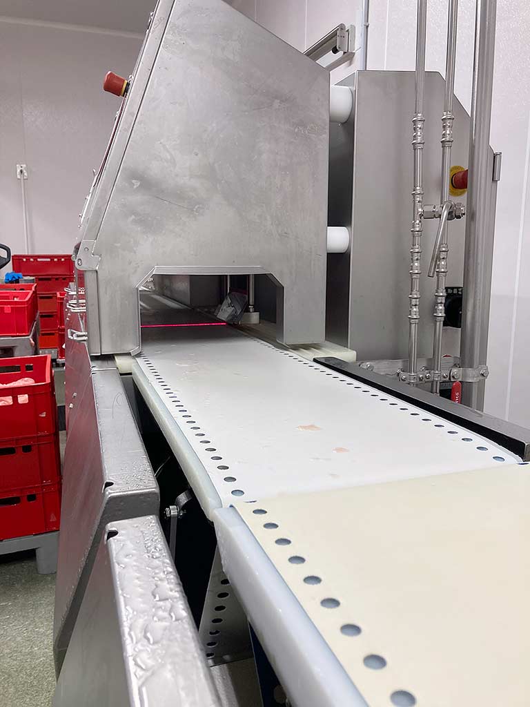 Marel IPM3 X300 Порционный нарезчик для рыбы в комплекте с динамическими весами Marel INW3 X300. Динамические весы перед нарезчиком взвешивают каждый кусочек и передаёт этот вес в нарезчик. Это повышает точность нарезки и снижает погрешность.Интеллектуальная порционирующая машина (IPM) сочетает в себе транспортировку, взвешивание и встроенное компьютерное зрение для точного порционирования пищевых продуктов. IPM одинаково хорошо подходит для использования в рыбной, птицеводческой и мясной промышленности.