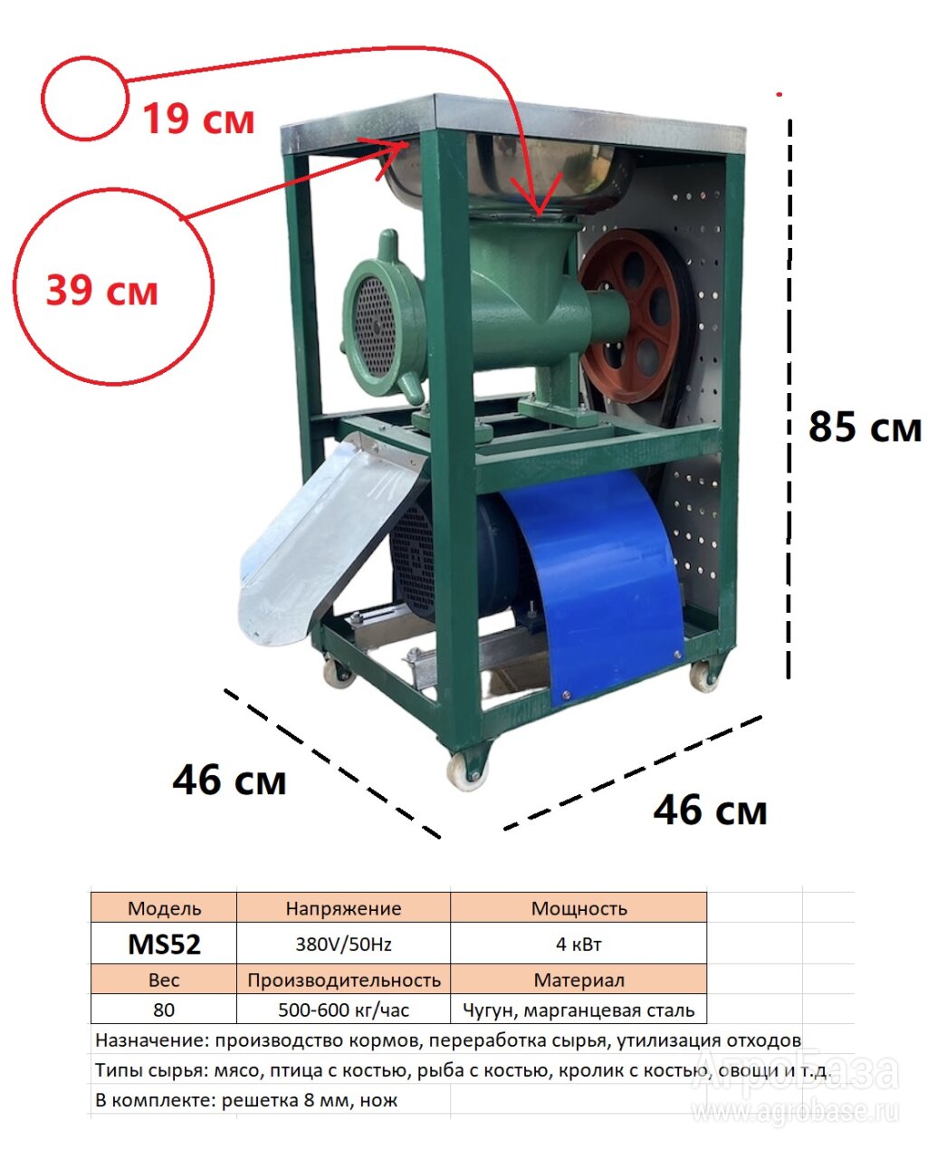 Мощная промышленная мясорубка 4 кВт (380В) MS52 модель 52 - 60000 руб (есть модели от 35000 до 180000 руб, на 220В и 380В - звоните, все расскажем подробно, вышлем видео работы)