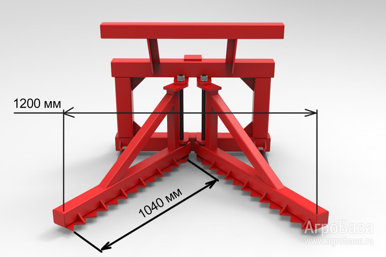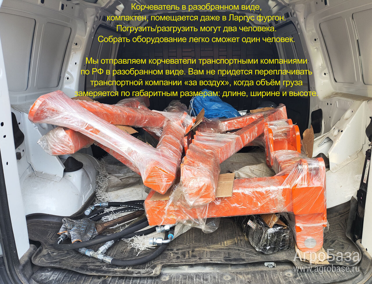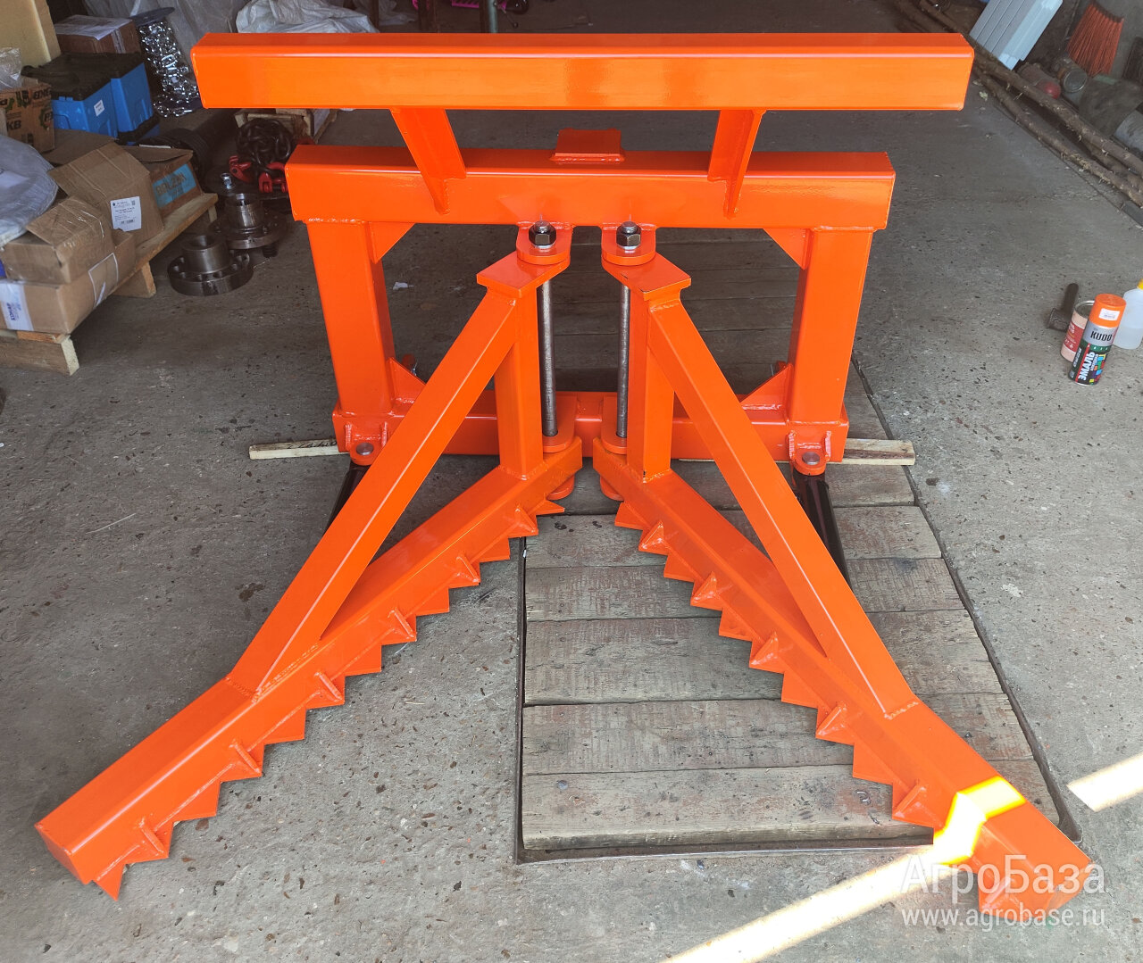 Рама корчевателя выполнена из профильной трубы 100х100х5 мм, усилена ребрами жесткости, косынками и распорками. Все пальцы и оси сделаны из металла марки Сталь 45. Корчеватель оснащен рамкой-толкателем для защиты кабины от падения деревьев. В подвижную часть подвижных зажимов вварены толстостенные втулки из металла марки Сталь 45. Оси подвижных зажимов имеют защиту от проворота. Толкающее усилие на штоках гидроцилиндров (сила сжатия зубчатых зажимов) 4 тонны.