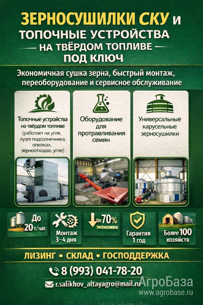 Производство и монтаж зерносушилок «СКУ» Топочных устройств на твердом топливе, а также их переоборудование. Протравители семян и другое оборудование для Вас!!!