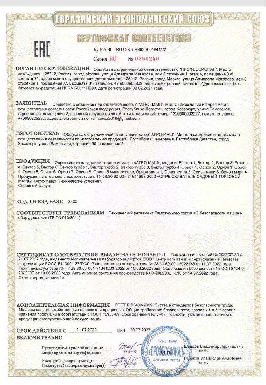 Опрыскиватель садовый прицепной вентиляторный модель «Oriоn 7», на 2000 L