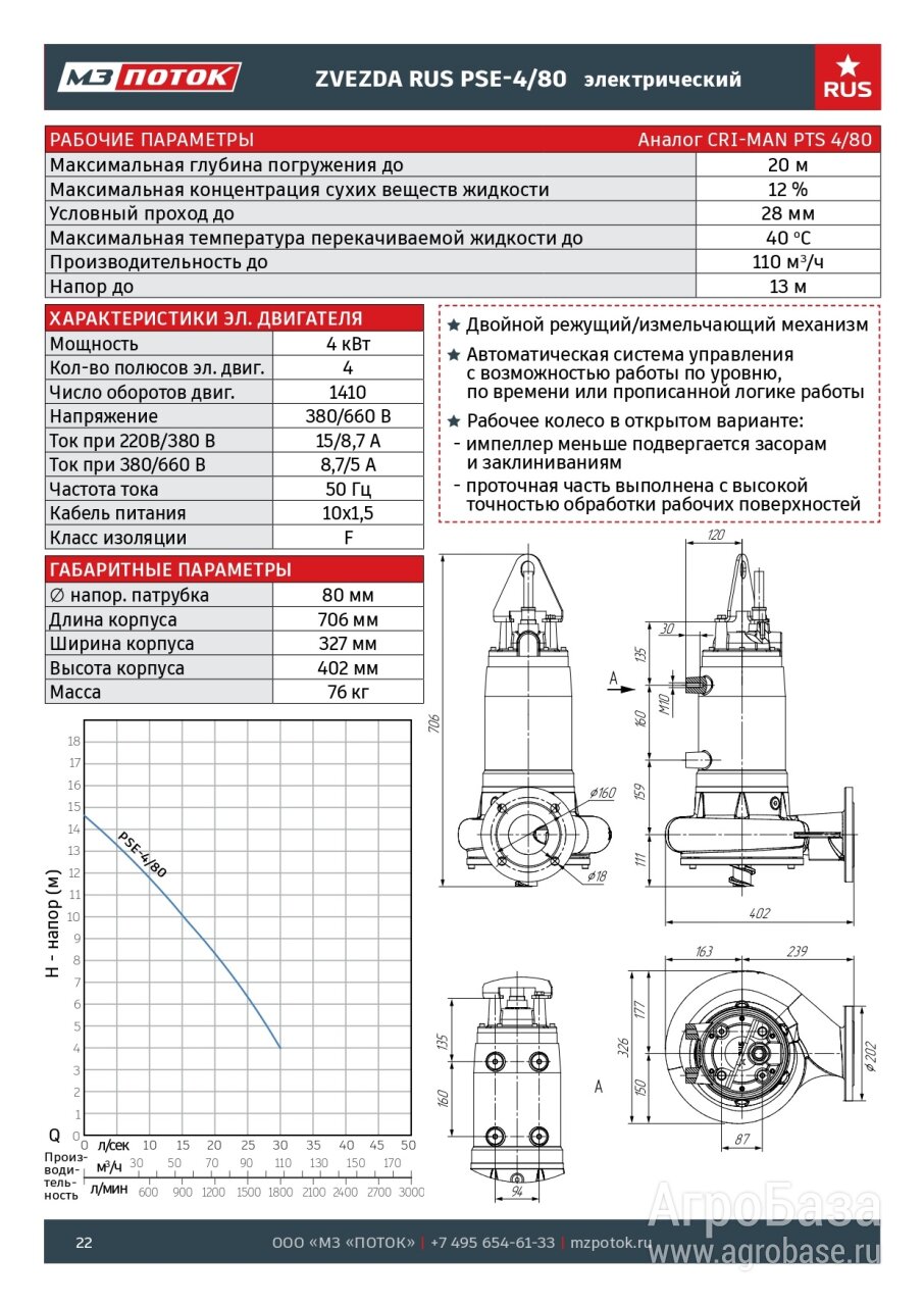 Погружной насос для навоза с системой двойного измельчения Zvеzdа RUS РSЕ-4/80.