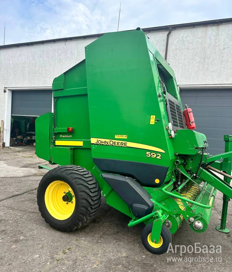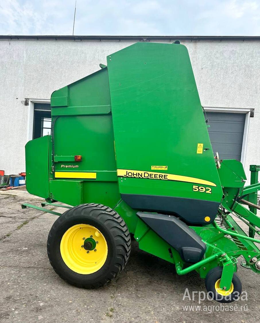Пресс-подборщик John Deere 592 Premium (пресс Джон Дир). Ременный пресс, высокая производительность, качественный подбор массы. - Регулируемый диаметр рулона от 0,6м до 1,8м; - регулируемая плотность рулона; - широкий подборщик с захватом 2,2м; - обмотка шпагатом/сеткой; - роторный подаватель (подающий ротор без ножей); - копирующие колёса подборщика; - система центральной смазки; - откатная рампа для рулонов. Доставка "до порога", звоните - вышлем фото/видео обзор и согласуем поставку.