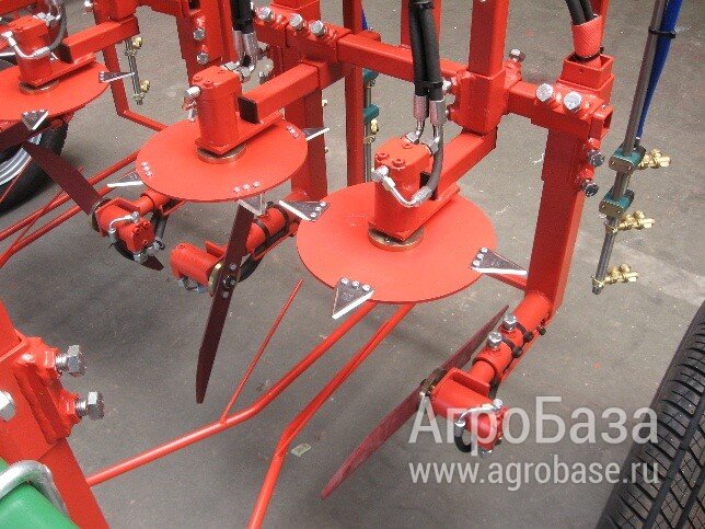Дисковые ножи в замен роторных. Устанавливаются по два ножа над каждым рядом, каждый с собственным гидромотором (всего 8 гидромоторов). Ножи вращаются внутрь рядка, что гарантирует высокое качество и полную чеканку лозы.