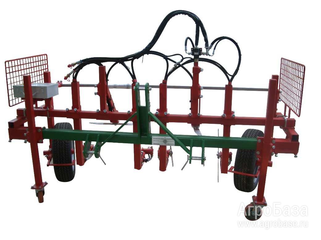 Двухрядная машина для обработки виноградников с ходовым механизмом и трехточечной навеской категории II. Для обрезки (чеканки) лозы сверху ряда используются два вращающихся ножа, а для боковой обрезки – по одному ножу с каждой стороны ряда. Направляющие штанги обеспечивают точное подведение ножей к рядкам.
