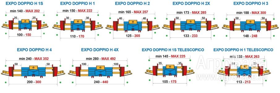 Агрегат EXPO DOUBLE H Arrizza (Италия) – для приствольной обработки виноградника, с гидравлическим расширением, междурядными ножами и трехточечной сцепкой.
