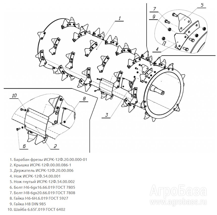 Рабочий барабан фрезы предназначен для отделения и измельчения силоса в кормосмесителе ИСРК‑12Ф. Обеспечивает равномерную подготовку кормовой массы для дальнейшего смешивания.