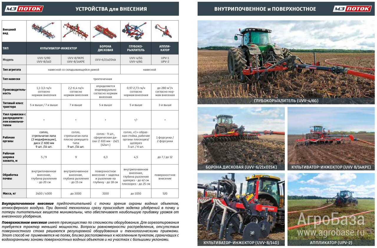 - техника внесения в почву (глубокорухлители / культиваторы-инжекторы / бороны / аппликаторы)