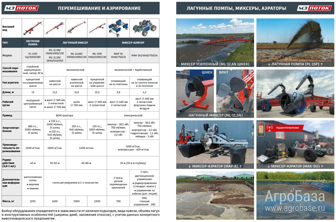 - оборудование перемешивания / аэрирования жидких органических удобрений (лагунные помпы и моксеры от ВОМ, плавающие электрические миксеры)