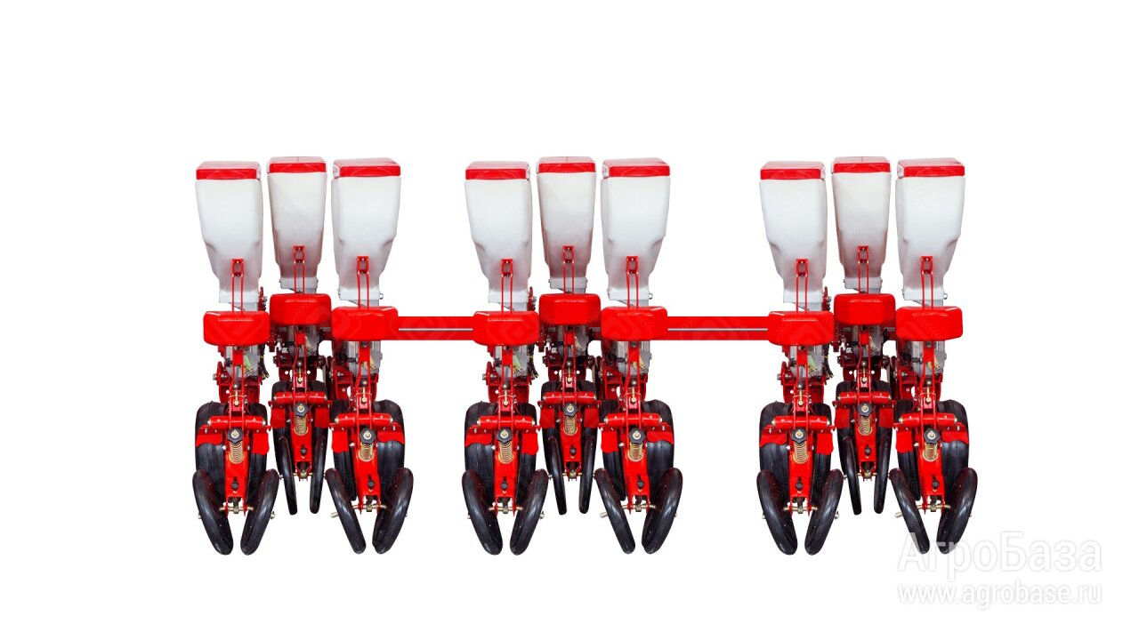 Посевные секции установлены на независимых параллелограммах с мощными двойными пружинами с регулируемым нажимом, от 170 до 300 кг, которые в совокупности с двумя резиновыми колёсами контроля глубины гарантируют постоянство заданной глубины посева независимо от условий.
