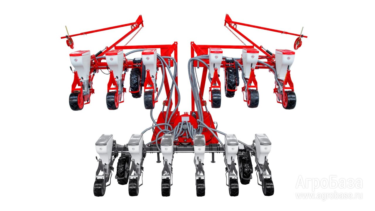 Универсальная пневматическая сеялка предназначена для точного высева калиброванных семян кукурузы, подсолнечника, клещевины, сорго, сои, а также семян кормовых бобов, фасоли, люпина с одновременным, раздельным от семян внесением гранулированных минеральных удобрений дисковым сошником.