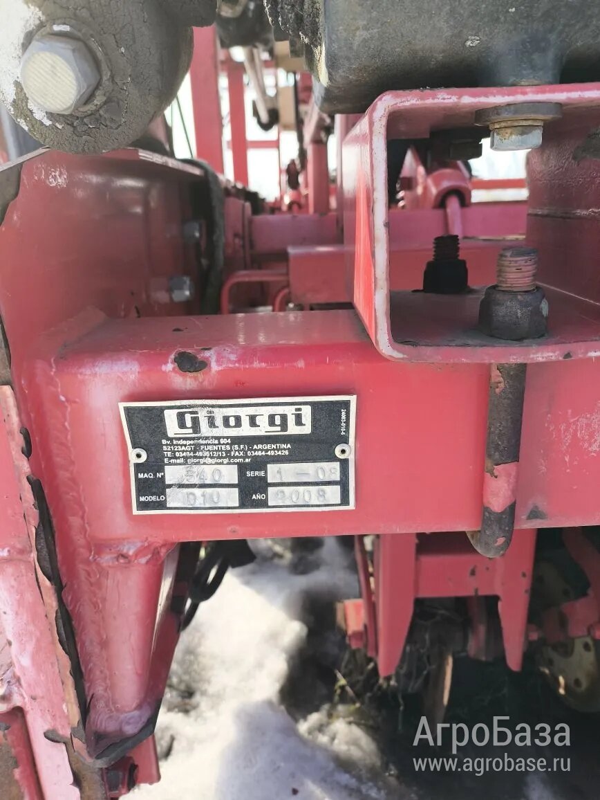 Сеялка giorgi D10. В отличном состоянии. Механическая сеялка прямого посева (No-till) Аргентинского производства Giorgi D-10, под трактор от 300 л.с. Сеялка имеет дифазный сошник с двумя опорными колесами контроля глубин, заделывающим колесом и двойными угловыми задними укрывающими колесами. Прекрасно работает по любой технологии обработки почвы, качество сева безупречное. Сеялка позволяет сеять все культуры, в том числе мелкосемянные и одновременно вносить удобрения на линию посева. Сеялка б/у с наработкой в хорошем состоянии. Данная сеялка лучшее решение для бюджетного перехода на технологию No-till. Можно работать как одной сеялкой шириной захвата 5,4 метра с трактором Т-150. Междурядье на сеялке 19 см, ширина захвата - 16,2 метра. Имеет транспортное положение с продольной транспортировкой и маркеры. Есть Сеялка Gaspardo TC-G (восьмирядная). На восстановление или на запчасти. Осмотр по месту в объявлении.