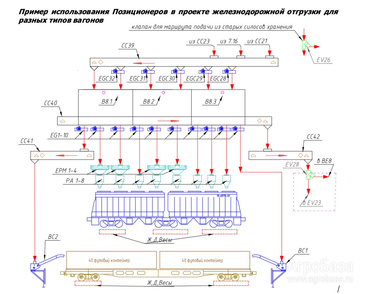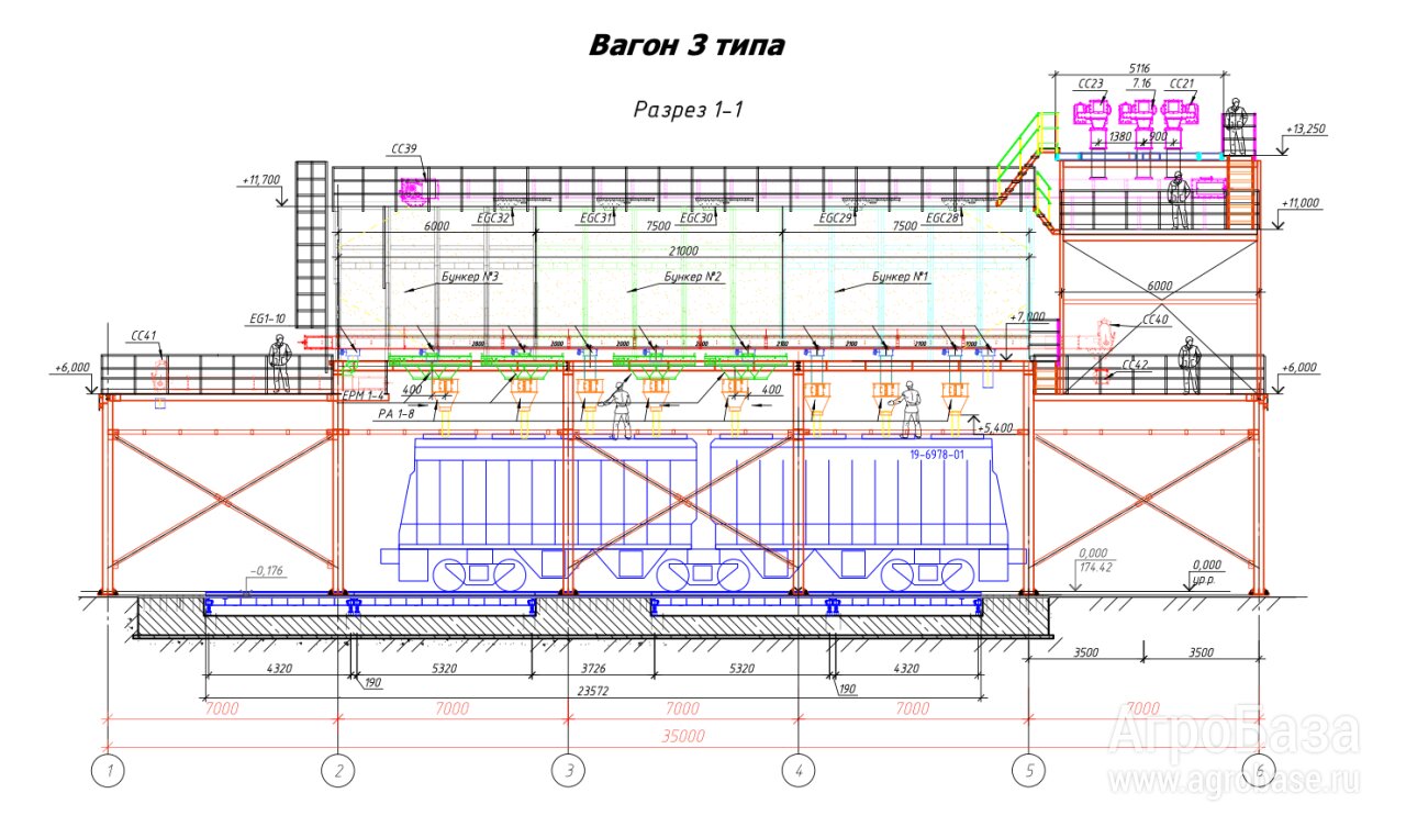 • Точное позиционирование загрузки над люком вагона
