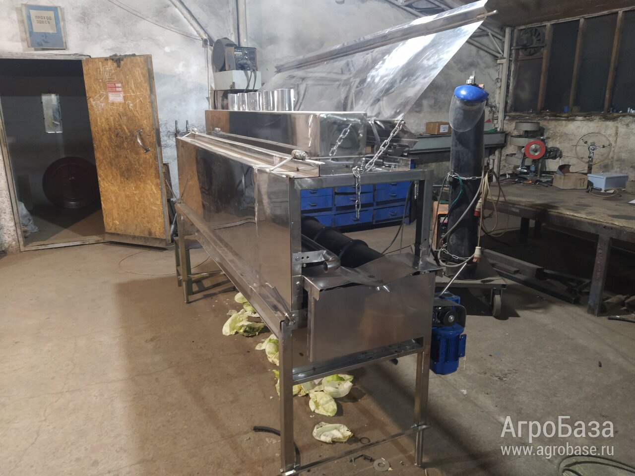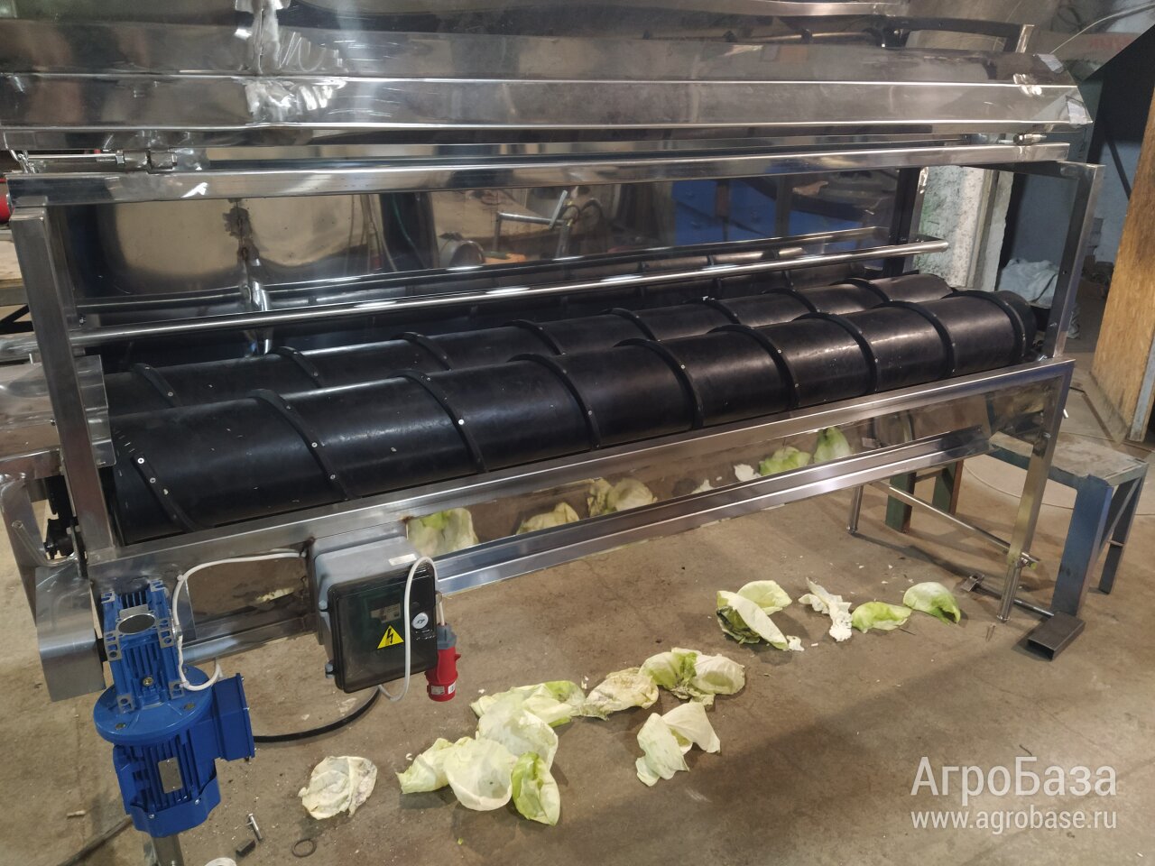 Машина предназначена для механического снятия наружнего листа белокочанной капусты с пневмо раздувом. Машина изготовлена из нержавеющего металла. Машина встраивается в линию предпродажной подготовки капусты и может комплектоваться воздуходувкой для раздутия листа.