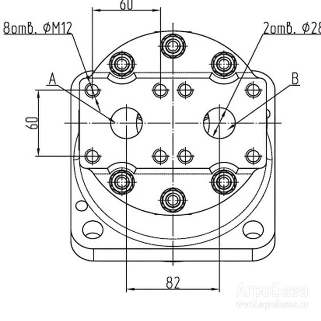 Присоединение рабочих каналов рабочие линии A, B - ⌀28, отверстия М12