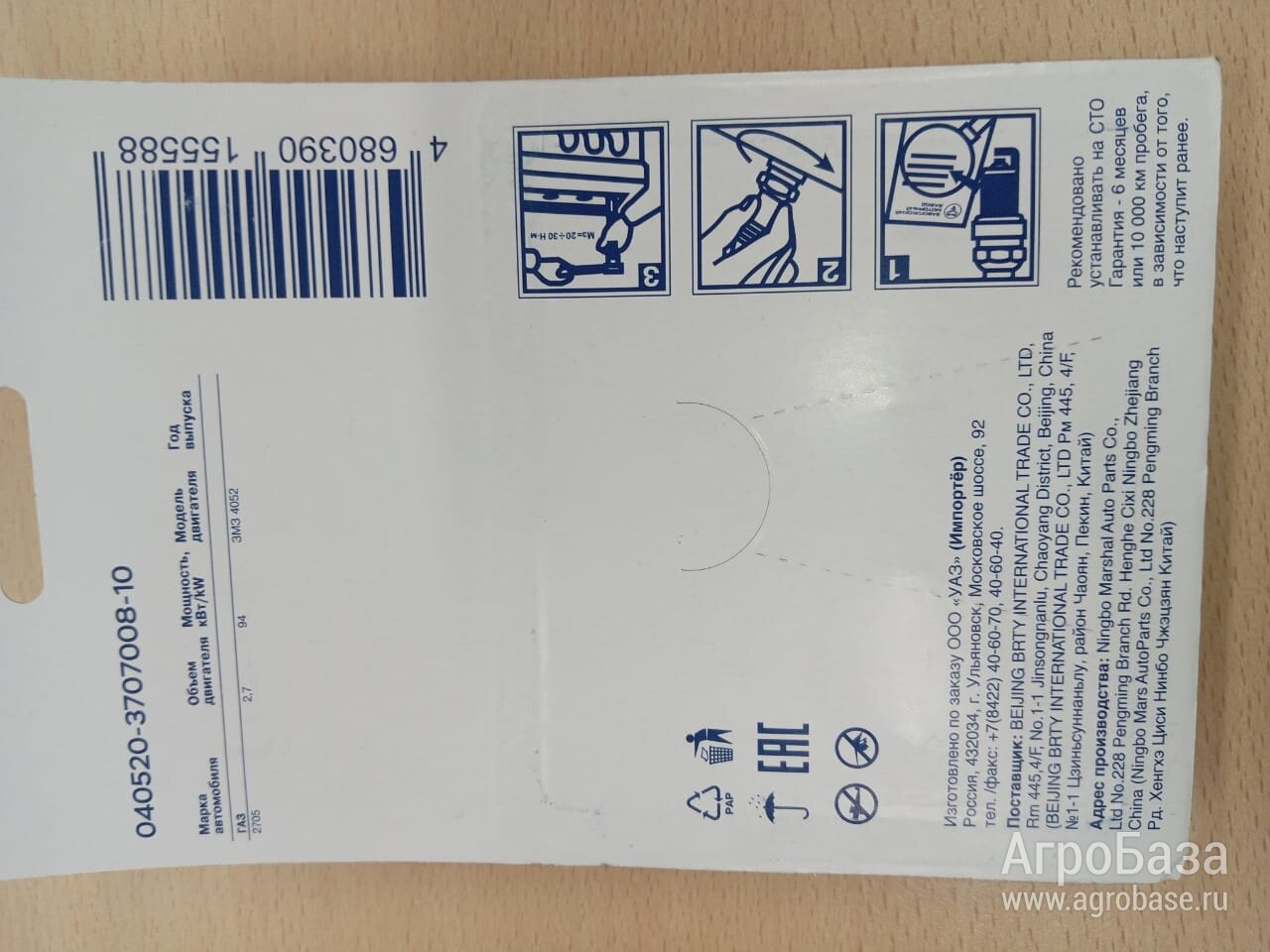 ОРИГИНАЛ!!!! КОМПЛЕКТ СВЕЧЕЙ ЗАЖИГАНИЯ (ДЛЯ А/М УАЗ, ДВ. 40904, 40905
