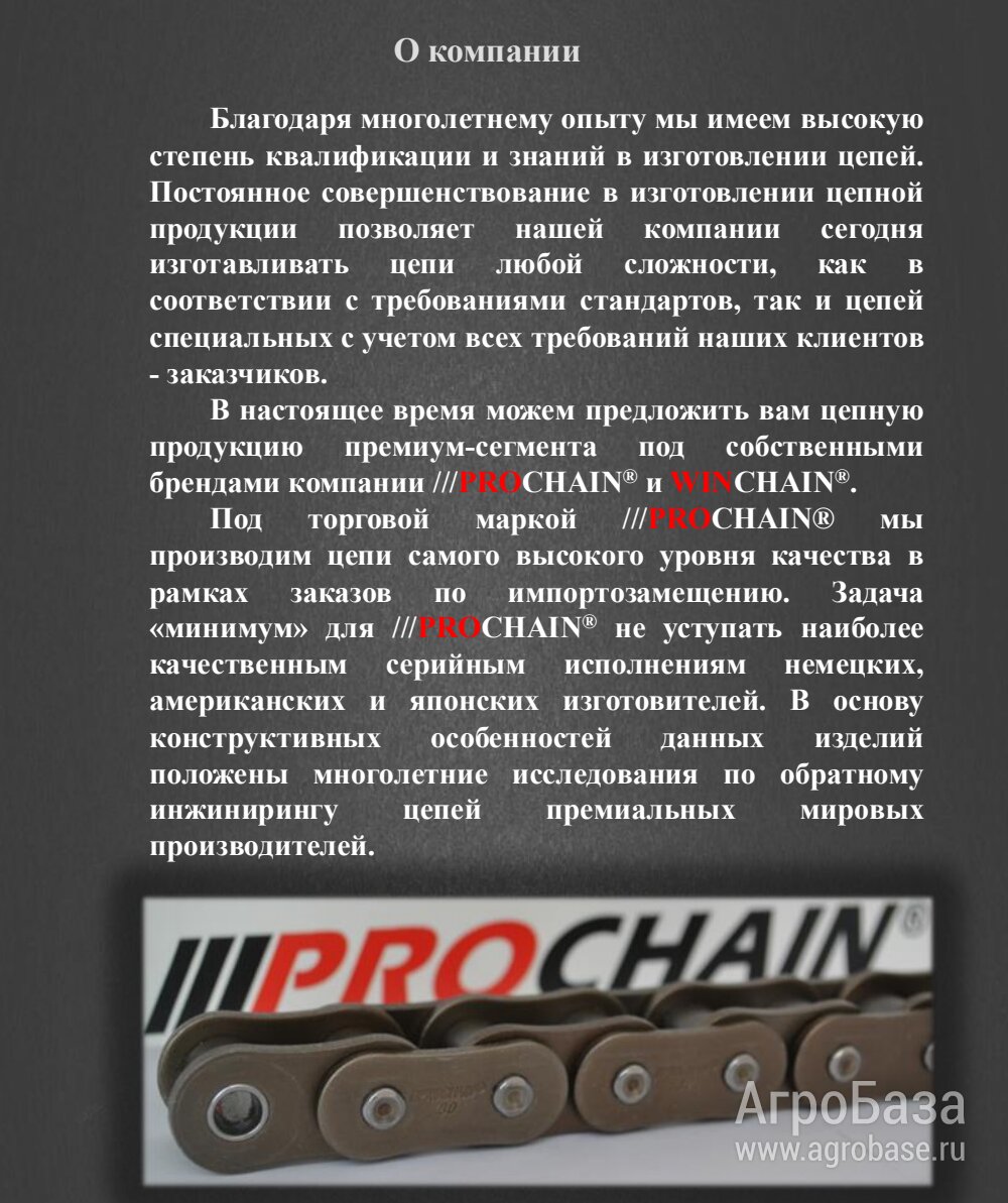 Уважаемые сельскохозяйственные производители и мастера! Мы рады предложить вам высококачественные приводные цепи. Наши цепи отличаются надежностью, долговечностью и высокой износостойкостью, обеспечивая эффективность и безопасность работы вашего оборудования.