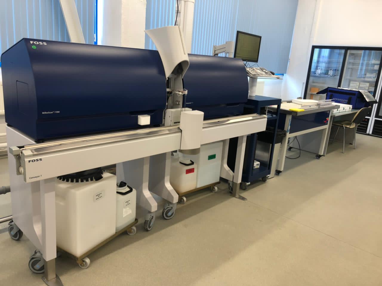 Лаборатория селекционного контроля качества молока открылась еще в 2019 году и уже стала лидером в своей области — в месяц здесь проводится около 80 тыс. тестирований по 14 основным показателям молока. Исследования проводятся на современных анализаторах последнего поколения датской компании FOSS CombiFoss™ 7, который за несколько секунд анализирует пробу молока на 14 показателей (процентное содержание жира, белка, лактозы, мочевины, сухих веществ, соматических клеток и др.), все это помогает контролировать эти показатели в динамике при условии регулярной ежемесячной сдачи проб молока. Также CombiFoss™ 7 предоставляет возможности исследования молока на содержание соматических клеток, чтобы получить более полную информацию для диагностики мастита за 6 секунд. К другим передовым методам исследования относятся скрининг кетоза и поиск фальсификатов в сыром молоке. Данные методы позволяют поддерживать продуктивность стада и эффективность питания на должном уровне.