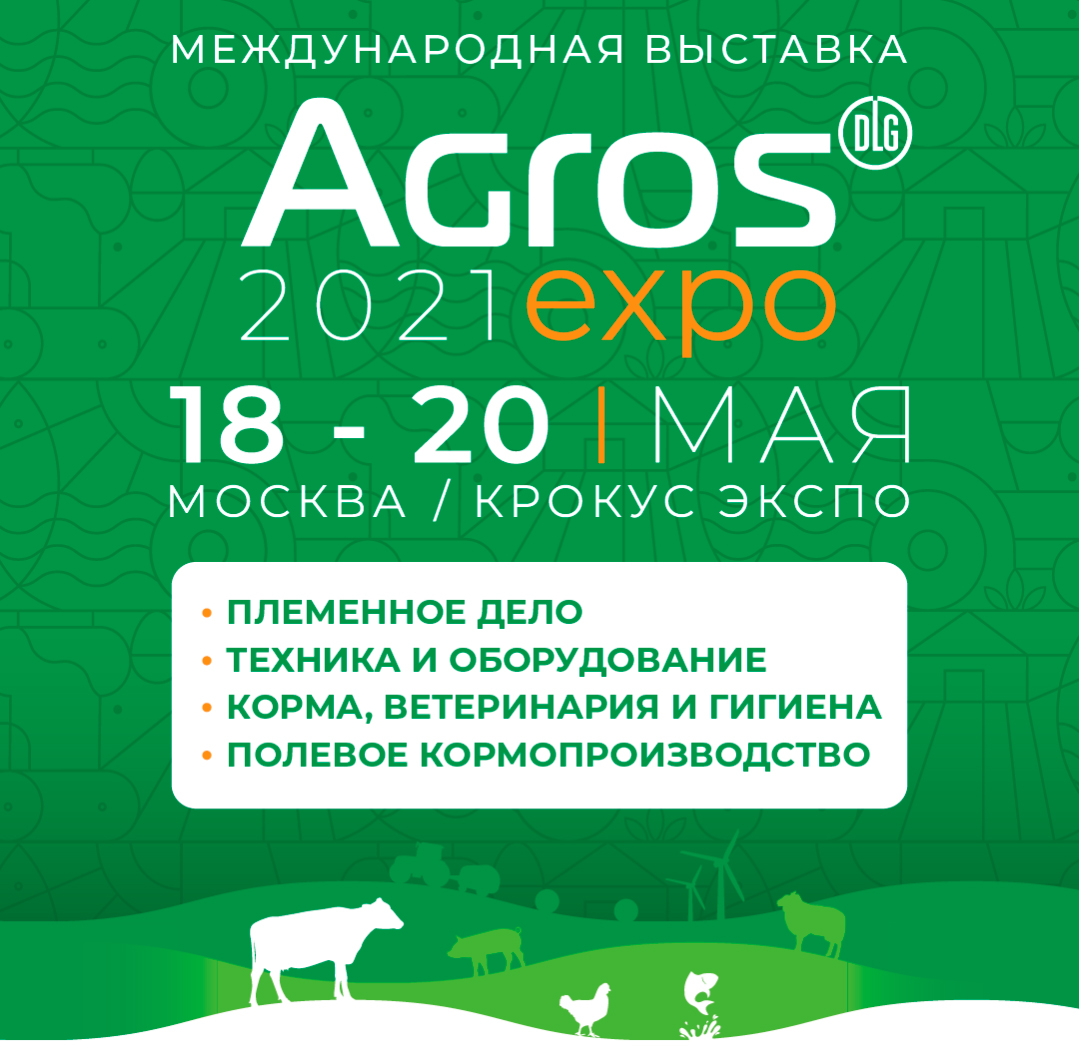С 18 по 20 мая 2021 года в Москве, в павильоне 2 МВЦ «Крокус Экспо», состоится Международная выставка технологий для животноводства и полевого кормопроизводства - АГРОС. Выставка охватывает полный спектр технологий, продуктов и услуг для отрасли животноводства: Племенное дело; Техника и оборудование; Корма, ветеринария и гигиена; Технологии для полевого кормопроизводства. Ключевая тема деловой программы – «Здоровые животные - здоровые потребители».