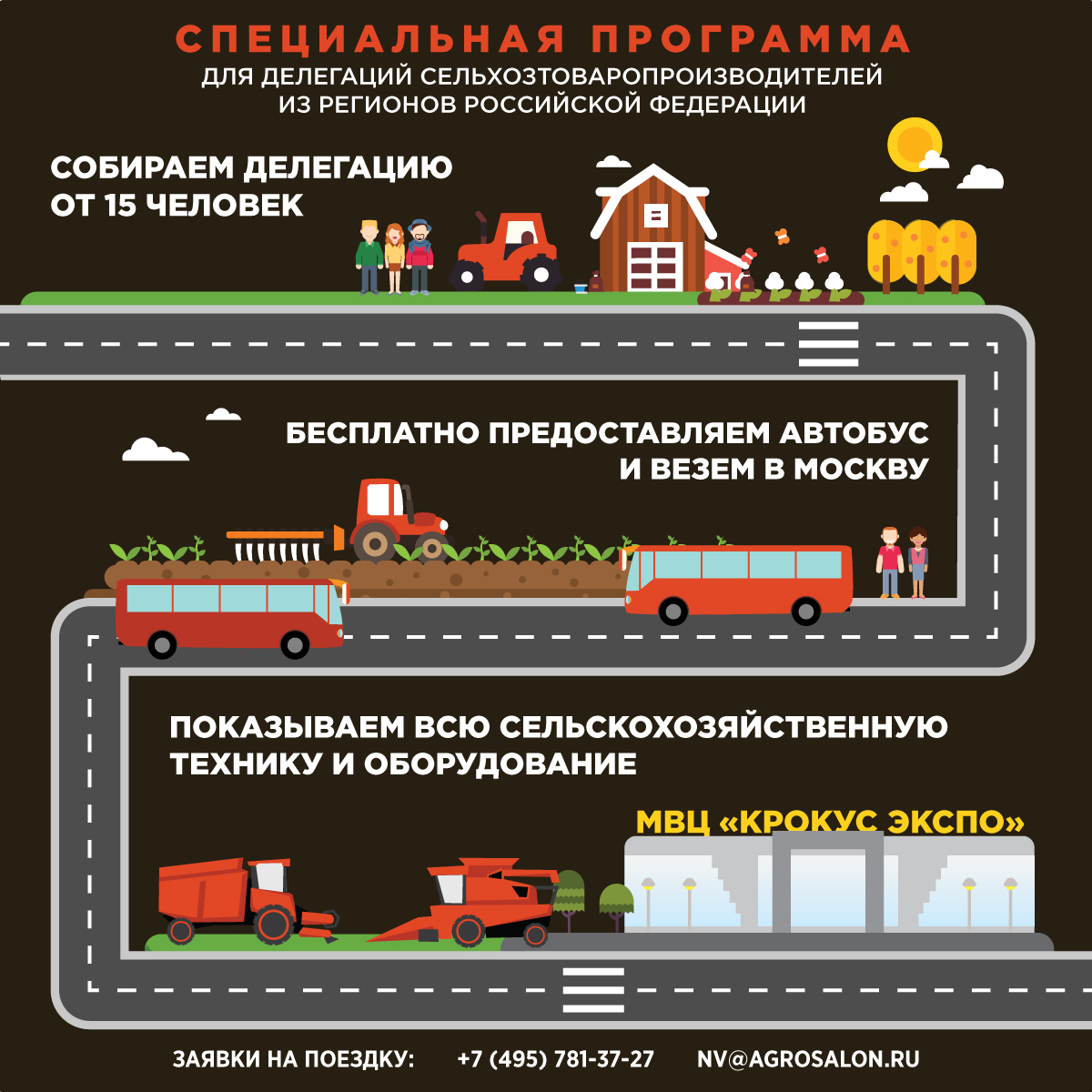 Международная выставка сельхозтехники АГРОСАЛОН предлагает специальную программу для делегаций сельхозтоваропроизводителей из регионов Российской Федерации.