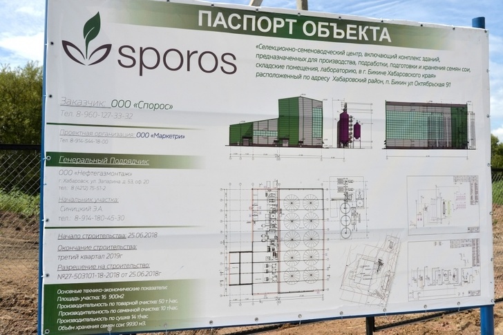 Строительство первого в Хабаровском крае семеноводческого завода началось в городе Бикин. Проект реализует компания «Спорос», которая уже построила аналогичные производства в западной части страны. На предприятии будут выращивать и перерабатывать семена сои. Эта продукция является очень востребованной среди сельхозпроизводителей Амурской области, ЕАО, Хабаровского и Приморского края. Сейчас аграрии Дальнего Востока вынуждены закупать семена сои либо в других регионах страны, либо за рубежом.