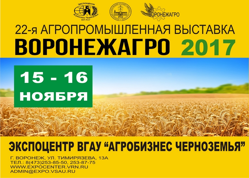 Воронежский ГАУ и Экспоцентр «Агробизнес Черноземья» ВГАУ приглашают принять участие в агропромышленной выставке